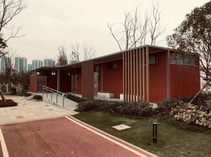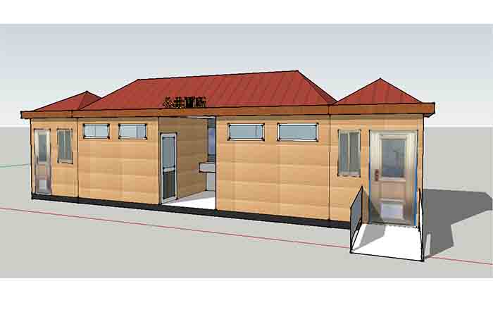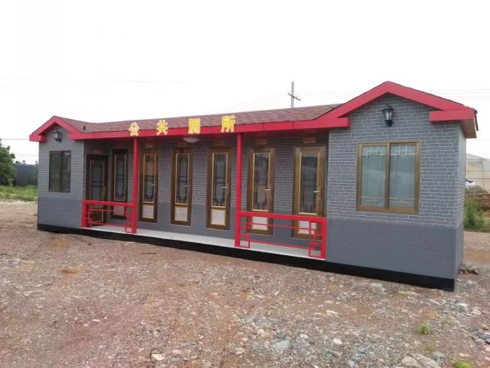 拼裝廁所;在廠里做好各個廁所部件,再到現(xiàn)場組裝在一齊,適合不易運輸?shù)拇笮蛶_@座箱式廁所,女廁5個蹲位內配工具間,男廁2個蹲位+2小便斗,第三衛(wèi)生間由殘疾馬桶、助力洗手盆和兒童馬桶、兒童洗手盆外加嬰兒臺等設施。廁所前后有窗,通風采光,前部走廊裝有屋檐,防雨防曬。此廁所位于公路綠道邊,整體大氣,功能齊全,造型美觀,是一道難得的靚麗景觀!