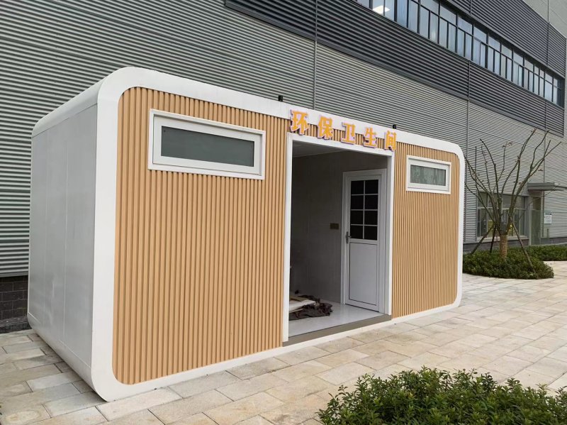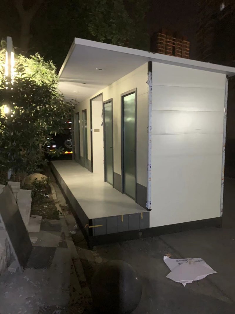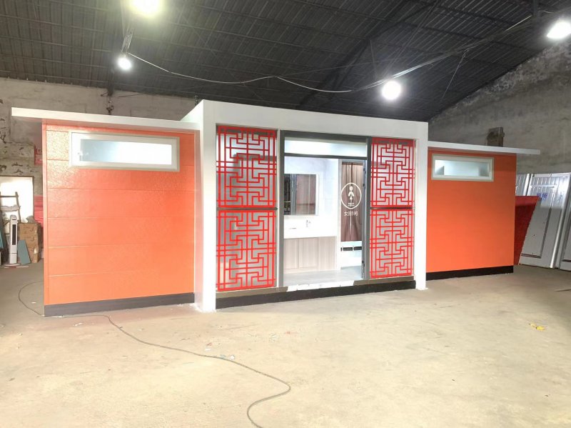 拼裝廁所;在廠里做好各個廁所部件,再到現(xiàn)場組裝在一齊,適合不易運輸?shù)拇笮蛶_@座箱式廁所,女廁5個蹲位內配工具間,男廁2個蹲位+2小便斗,第三衛(wèi)生間由殘疾馬桶、助力洗手盆和兒童馬桶、兒童洗手盆外加嬰兒臺等設施。廁所前后有窗,通風采光,前部走廊裝有屋檐,防雨防曬。此廁所位于公路綠道邊,整體大氣,功能齊全,造型美觀,是一道難得的靚麗景觀!